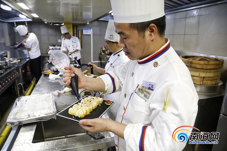 水晶宮粵菜酒樓的廚師在制作精美的食品。南海網(wǎng)記者 姚皓 攝