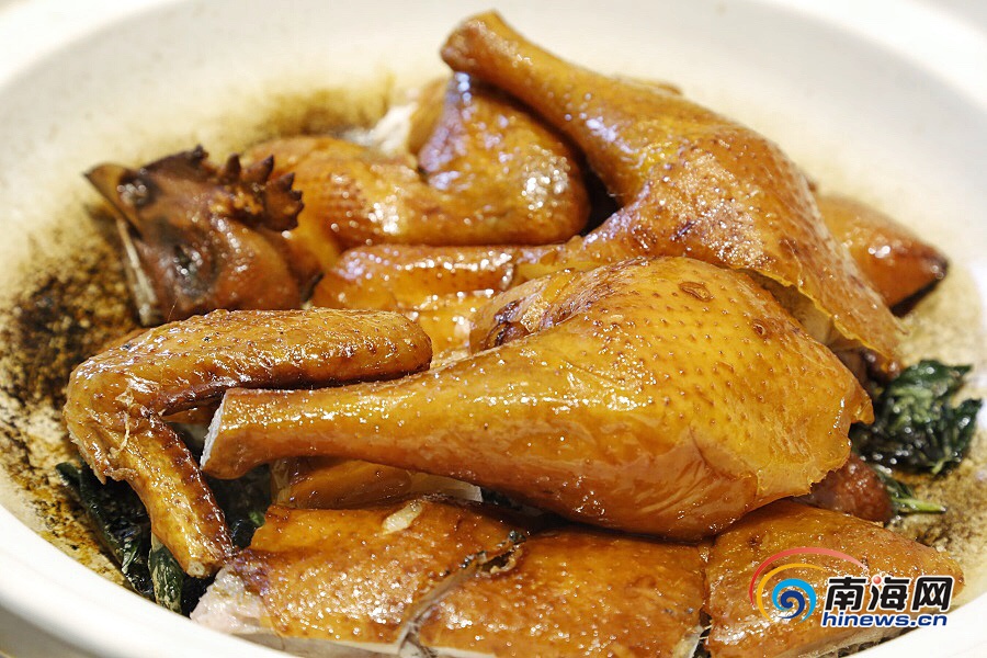 水晶宮新派粵菜的獨創(chuàng)招牌之一哈嘍雞。南海網(wǎng)記者 姚皓 攝