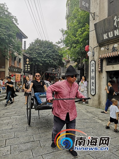 馮小剛電影公社里體驗“黃包車”的游客。南海網記者 蘇靚 攝