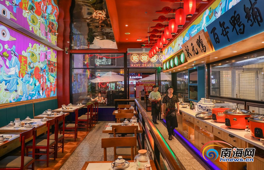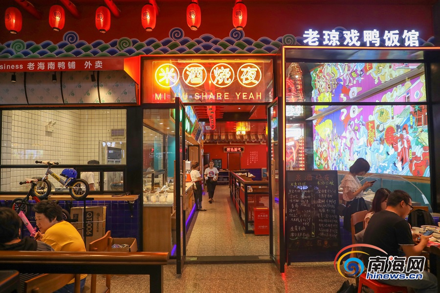 南海網、南海網客戶端海口5月7日消息(南海網記者 任桐)夜幕降臨,位于海口市秀英區尋嘗里夜市的文秀煮鴨開始迎接晚上的顧客。這是一家獨具特色的餐館,這種特色從表及里,從裝修到菜品;這也是一家有情懷的餐館,瓊戲主題、海南菜品,處處體現著店主人濃濃的海南情結。