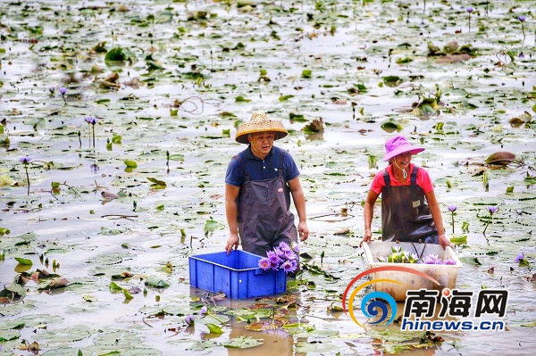 工作人員采摘睡蓮。南海網(wǎng)記者 蘇靚 攝