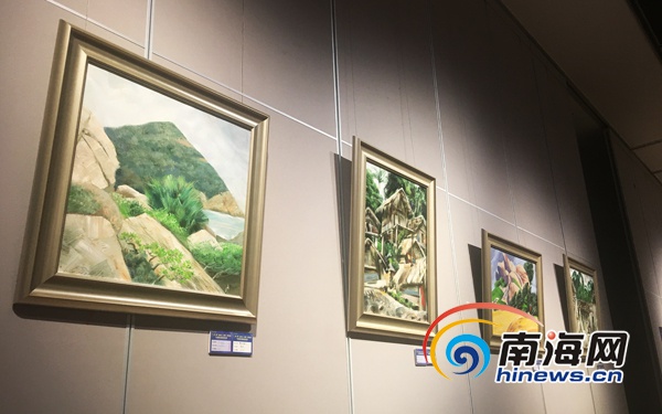 兩地畫家描繪海南故事的作品。南海網記者 陳麗娜攝