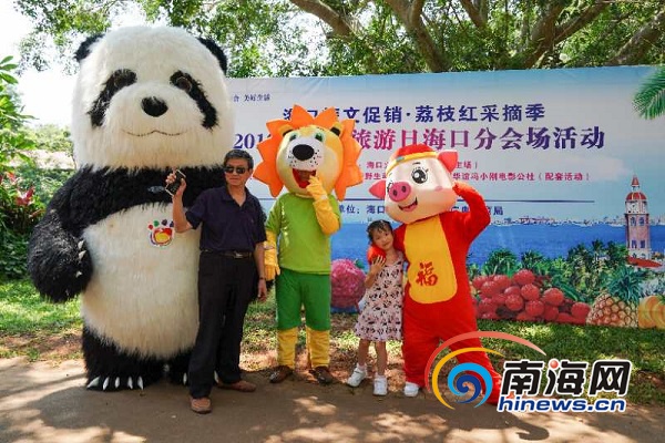 游客與動物玩偶互動合影。海口市旅文局供圖