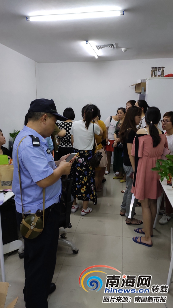 19日當天,在接到報警后,海口金貿派出所警員來到海南馳鵬文化傳媒有限公司辦公場所,數十位“團長”和“團員”現場投訴遭受欺詐,他們還認為,馳鵬文化傳媒涉嫌非法集資。