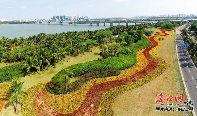 在全長12.57公里的濱江西帶狀公園里,椰子樹遍布,是??诿逼鋵嵉摹耙瑝糸L廊”。公園內(nèi)還栽植了很多本土樹種,充分體現(xiàn)了濱海城市沿江風(fēng)光,并搭配多種可以開花的樹種、灌木等植物。