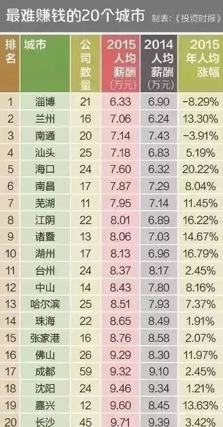 排在中國最難賺錢城市第5名