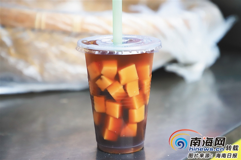 “做好粟米糕后,還需要調配糖水、蜂蜜水等各式底料。”吳姐介紹,食客們可根據個人口味,在粟米糕里加入紅糖水、蜂蜜、椰子水和椰奶等各類底料,冬天還可加入姜糖水,這樣一碗爽口的水粑就算制作完成了。