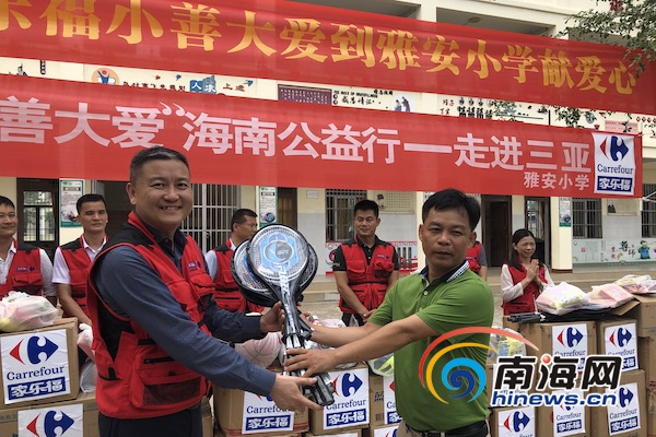 5月30日下午,由海口家樂福發(fā)起的“小善大愛”海南公益活動第十七站走進三亞市崖州區(qū)雅安小學(xué)。 南海網(wǎng)記者 劉子榕攝
