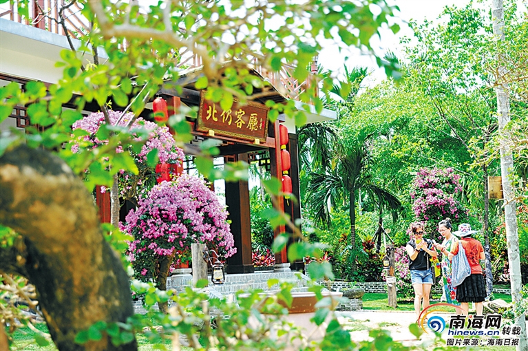 看得見山,望得見水,留得住鄉愁。“村游”是近幾年瓊海旅游的流行詞。北仍村景觀設計時尚又古樸,一處設施一個點綴,看似是隨意而為,卻又是匠心獨運。檳榔、椰子樹環抱著村莊,古樸的民居與田園密林相映成趣。村里不設圍墻,天地密林就是天然屏障。你可以繞著環村8公里的綠道騎行,可以在草寮咖啡屋和好友閑聊打發時間,也可以到檳榔林中的鄉愁味道農家樂、北仍大客廳去品味地道的鄉村美食。