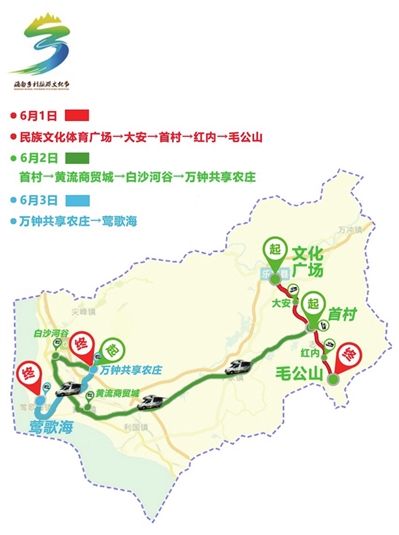 (1)6月1日(志仲分會(huì)場(chǎng)):民族文化體育廣場(chǎng)→大安→首村→紅內(nèi)→毛公山