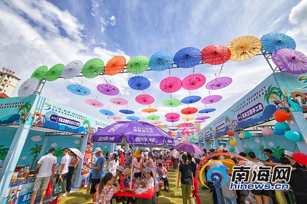 各市縣展區匯聚了海南19個市縣參展產品,而美食街則彌漫了濃濃的煙火氣,酸粉、竹筒飯、魚茶、薏粑、花生椰子饃、椰凍奶酪、黑豬肉干等海南特色小吃一應俱全,引爆現場人氣。