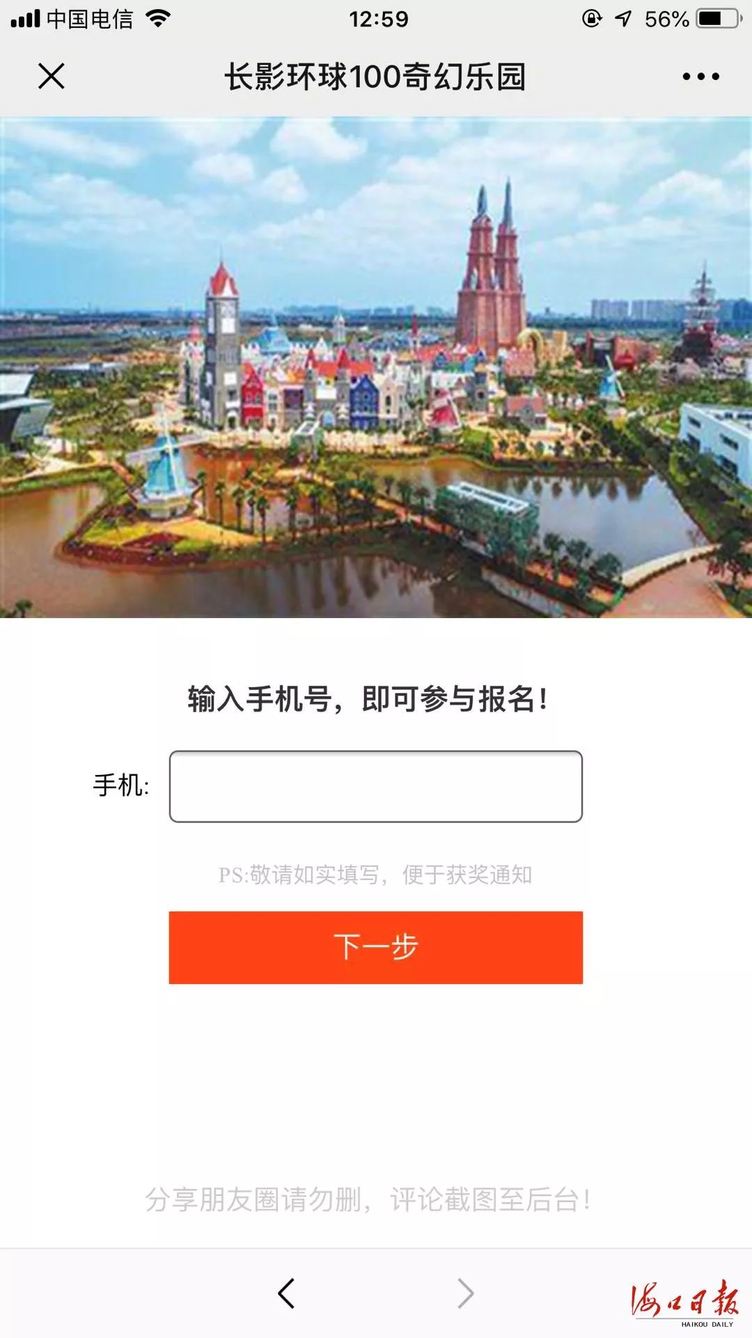 記者打開該鏈接看到,鏈接的題目確實(shí)寫著“長影環(huán)球100奇幻樂園門票免費(fèi)贈送”等吸人眼球等字樣,并在文中表示將抽取50位每人贈送門票2張。但想要獲得門票抽獎(jiǎng)名額,還必須填寫手機(jī)號并轉(zhuǎn)發(fā)至個(gè)人朋友圈。