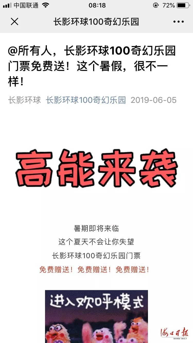 原標(biāo)題:朋友圈瘋傳海口長影環(huán)球100樂園門票免費(fèi)送?官方回復(fù)來了!