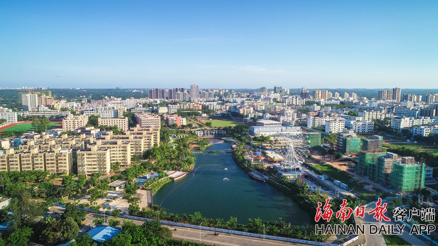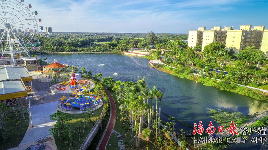 2019年6月13日,俯瞰位于文昌文城鎮的霞洞湖水生態綜合整治工程,項目用地面積105畝,集水上游覽區、濕地景觀區、岸邊休閑區為一體。