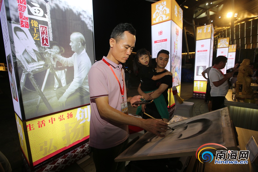 傳統炭畫像工藝傳承人在現場展示技藝。 南海網記者陳望 攝