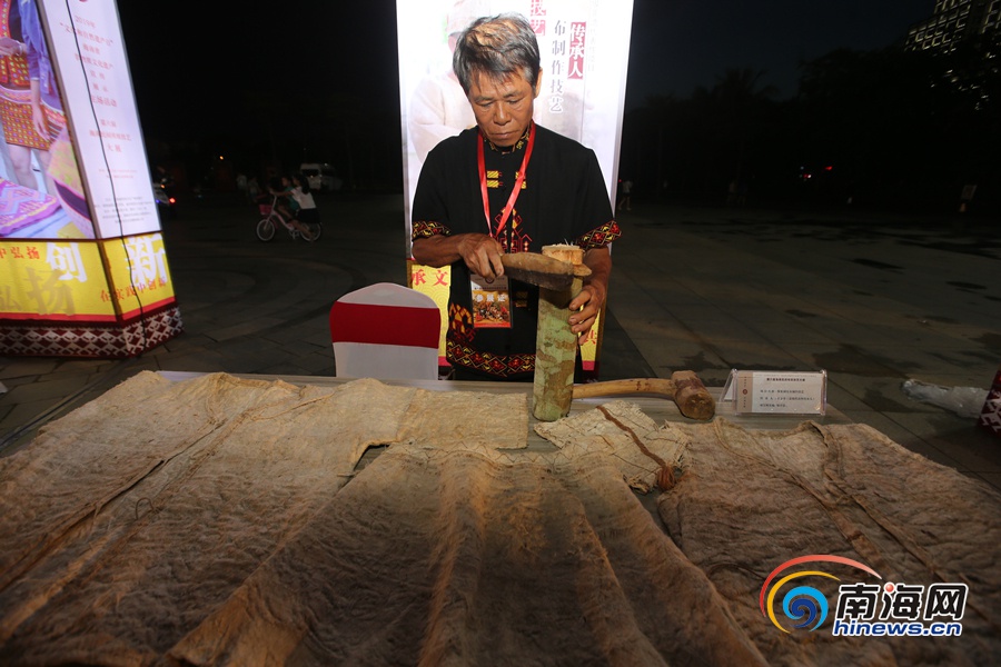 黎族樹皮布制作傳承人在現場展示技藝。 南海網記者陳望 攝