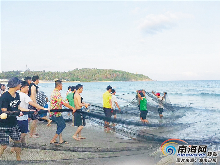 森林客棧萬寧日月灣店客人在海邊拉網捕魚。 海南日報記者 袁琛 通訊員 王標 攝