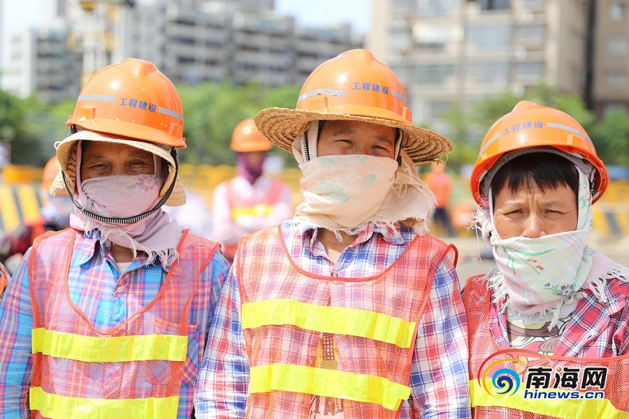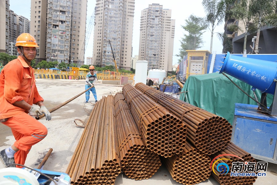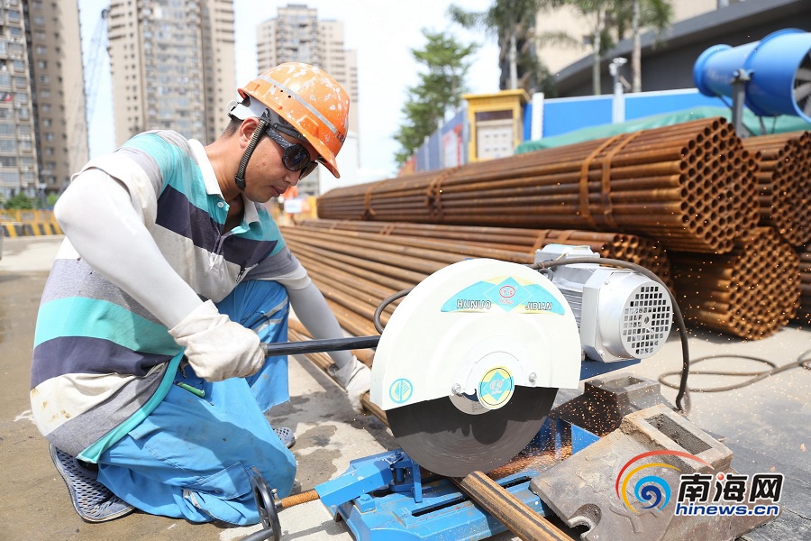 6月23日,在海口首條越江隧道——文明東越江通道項目施工現場,高溫下作業的勞動者。海報集團全媒體中心記者 張茂 攝