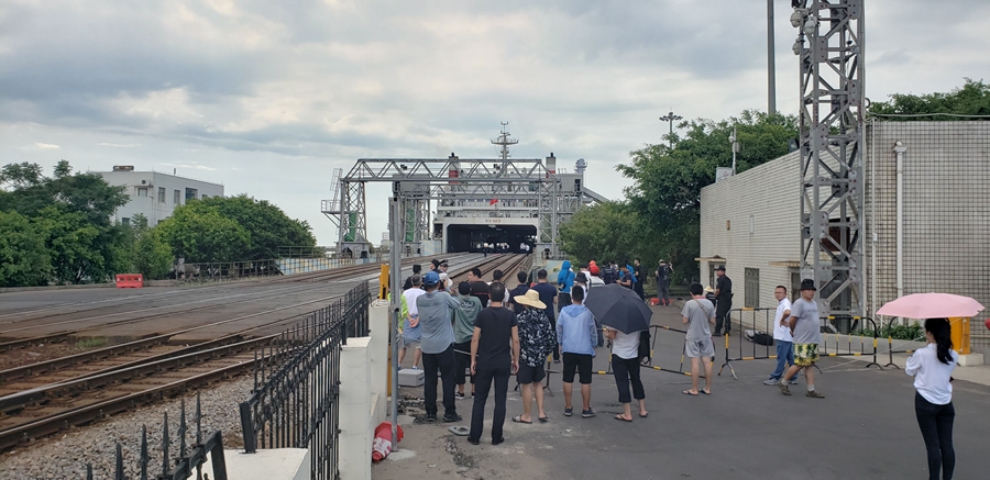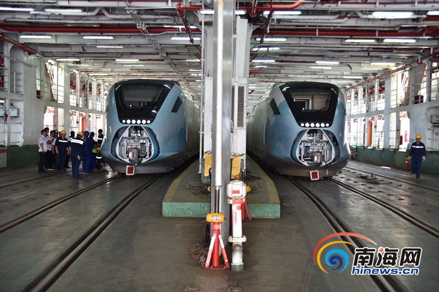 今天陸續抵達??诘乃牧惺薪剂熊嚪謩e為木棉花號、蜂虎鳥號、白鵜鶘號和水蕨菜號。市郊列車渡過瓊州海峽,駛入海南鐵路南港,約40分鐘之后抵達??诨疖囌荆瓿蓺v史性的交接。