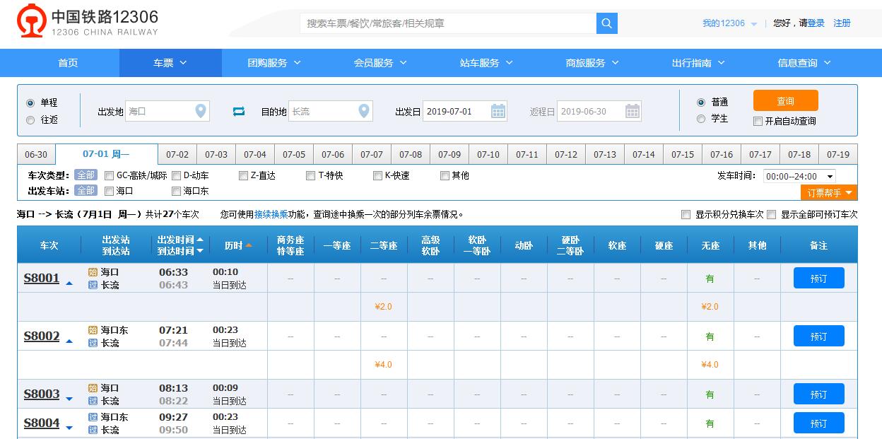 海口站至城西站票價為6元,用時28分鐘;