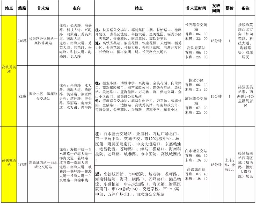 海口站至秀英站票價為4元,用時20分鐘;