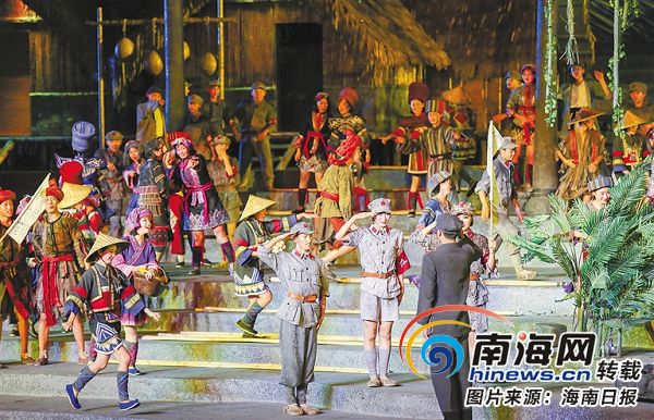 大型椰海青春實景影畫·紅色娘子軍的演出場景。本報記者 武威 攝