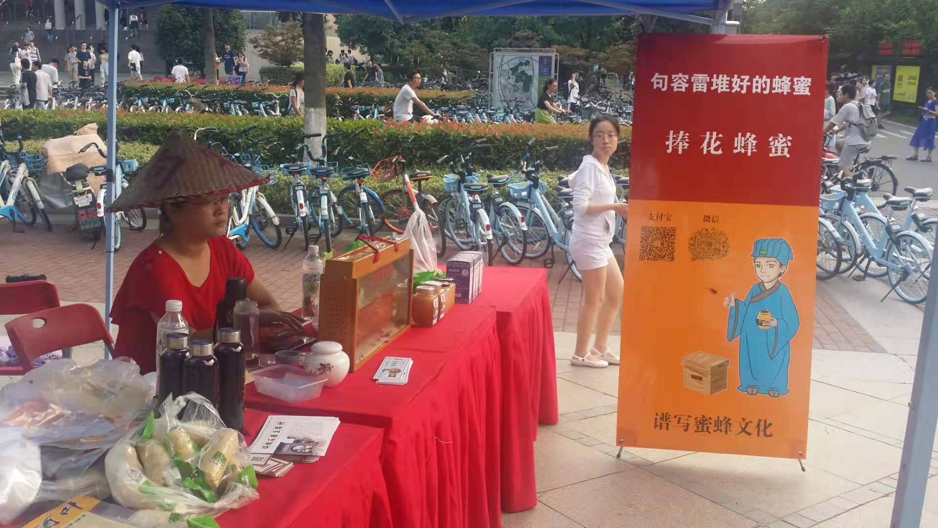 活動所在的舞臺兩邊,句容各式旅游商品一字展開,琳瑯滿目,吸引了眾多師生圍觀。活動現場除了大屏上向南大師生及現場人員播放對句容旅游宣傳片外,還專門進行了茅山、寶華山、赤山湖等推介,同時組織開展提問互動和抽獎環節,現場氣氛達到高潮。