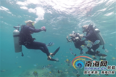 7月10日,陵水分界洲島旅游區,游客在清澈的海里體驗潛水。 海南日報記者 武威 特約記者 童國強 攝