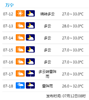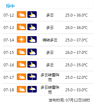 ?    海南部分市縣未來7天天氣預報↓↓↓