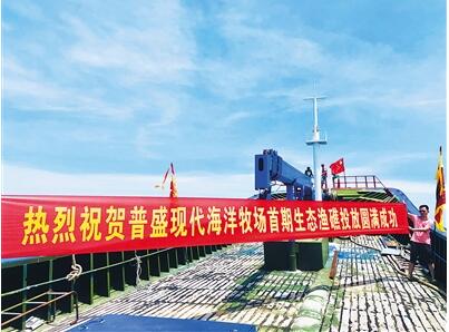普盛現(xiàn)代海洋牧場首期人工漁礁投放現(xiàn)場。