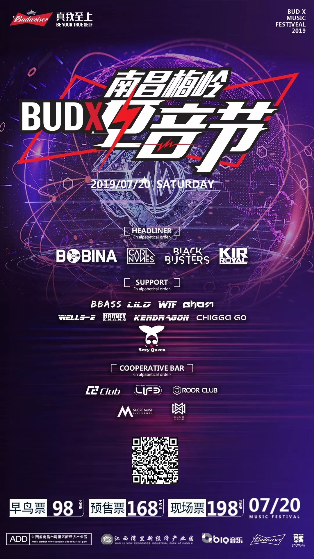2019年7月20日,年度江西最具人氣電音節:南昌梅嶺BUD X電音節即將精彩上演!一個好的電音節現場,最需要貨真價實的音樂。灣里為江西以及周邊的各位玩家特地打造了一場為期一天,由三位世界百大DJ領銜,聚集了眾多大牌巨星,共計超過20位國內外演出嘉賓傾力演出的音樂盛宴,讓你徹底陷入極度亢奮不可自拔的快感當中!