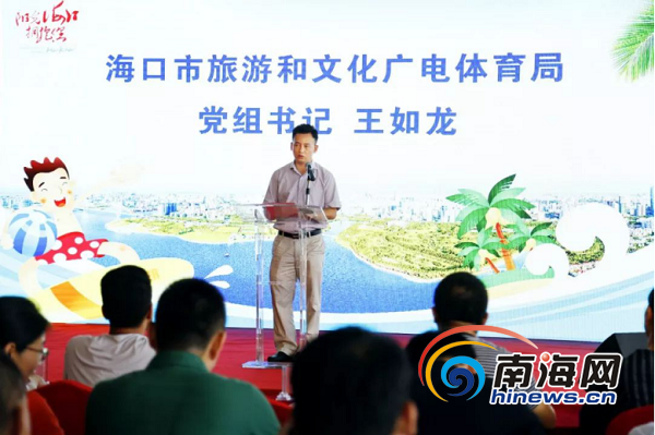 ?海口市旅游和文化廣電體育局黨組書(shū)記王如龍致辭。??谑新糜魏臀幕瘡V電體育局供圖