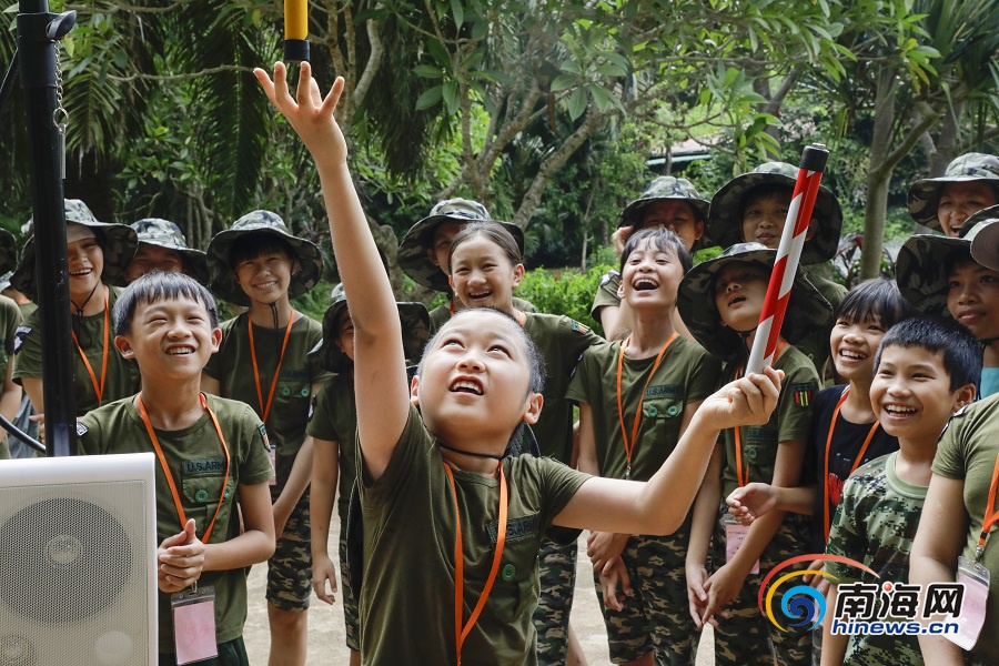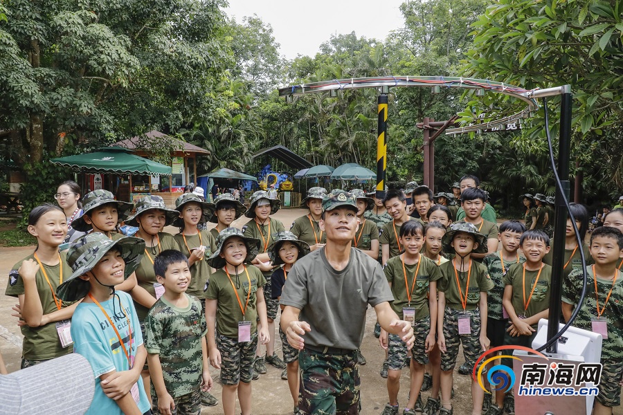 教官帶領瓊海留守(困境)兒童夏令營營員在海南熱帶野生動植物園做游戲。南海網記者 李昊 攝