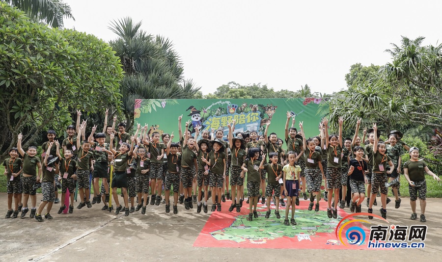 瓊海留守(困境)兒童夏令營營員在海南熱帶野生動植物園門口合影留念。南海網記者 李昊 攝