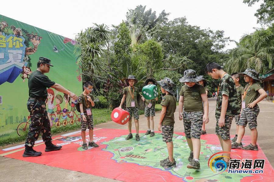 瓊海留守(困境)兒童夏令營營員在海南熱帶野生動植物園做游戲。南海網記者 李昊 攝