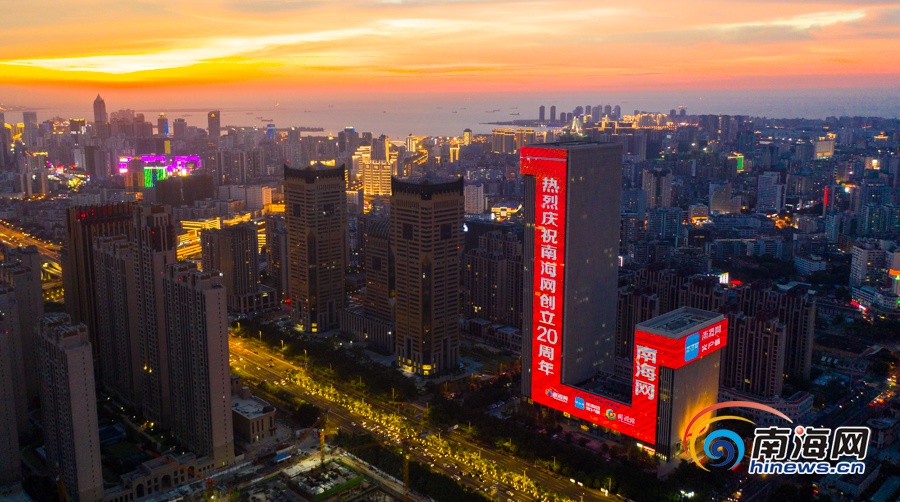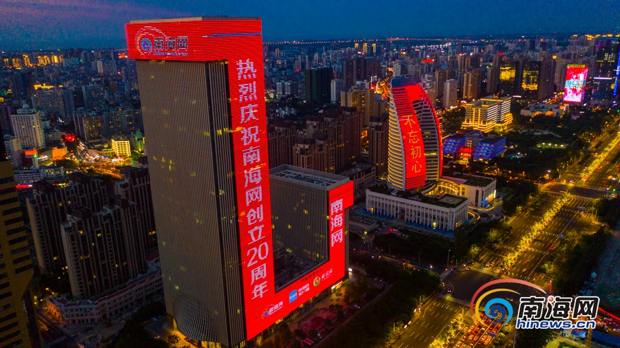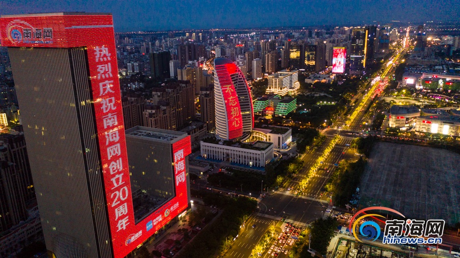 原創組圖 | 南海網創立20周年 海南大廈點亮祝福燈光
