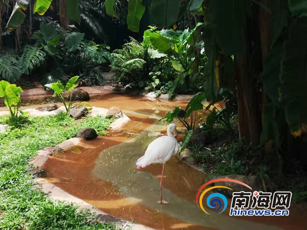 海南熱帶野生動植物園的火烈鳥吸引不少游客拍照。南海網記者 蘇靚 攝