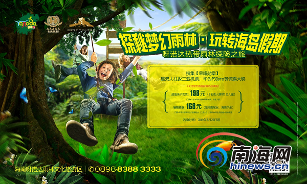 呀諾達景區推出全新暑期游 往返機票等萬元大獎助力游客探秘夢幻雨林