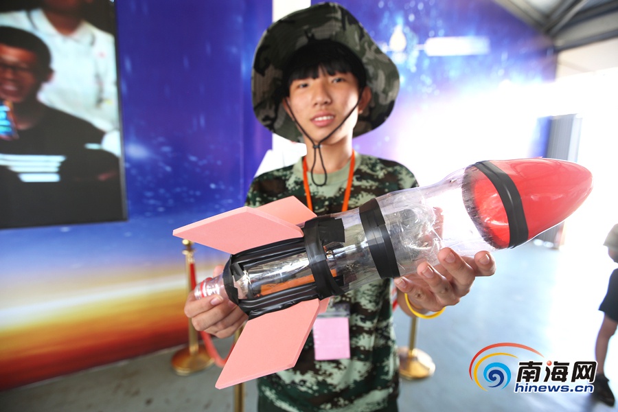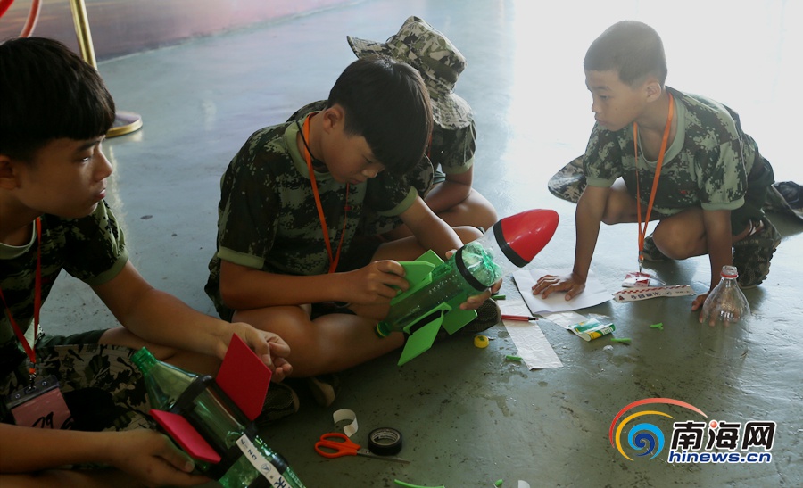 現場除了參觀文昌航天發射基地,小營員們還動手制作“水火箭”。在帶隊教練和老師的指導下,營員們利用廢棄的飲料瓶制作成動力艙、箭體、箭頭、尾翼,并且還給“水火箭”命名。