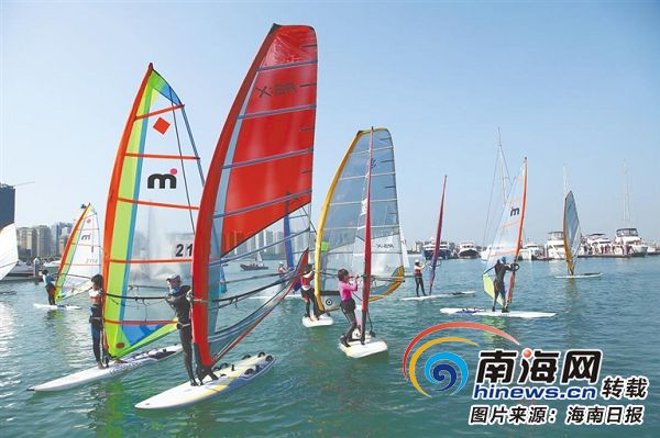 在海口市國家帆船基地,不少人前來體驗帆板運動。本報記者 張茂 攝