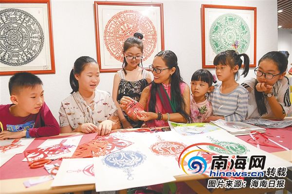 小朋友們在海口市民游客中心參加剪紙體驗活動。本報記者 袁琛 攝