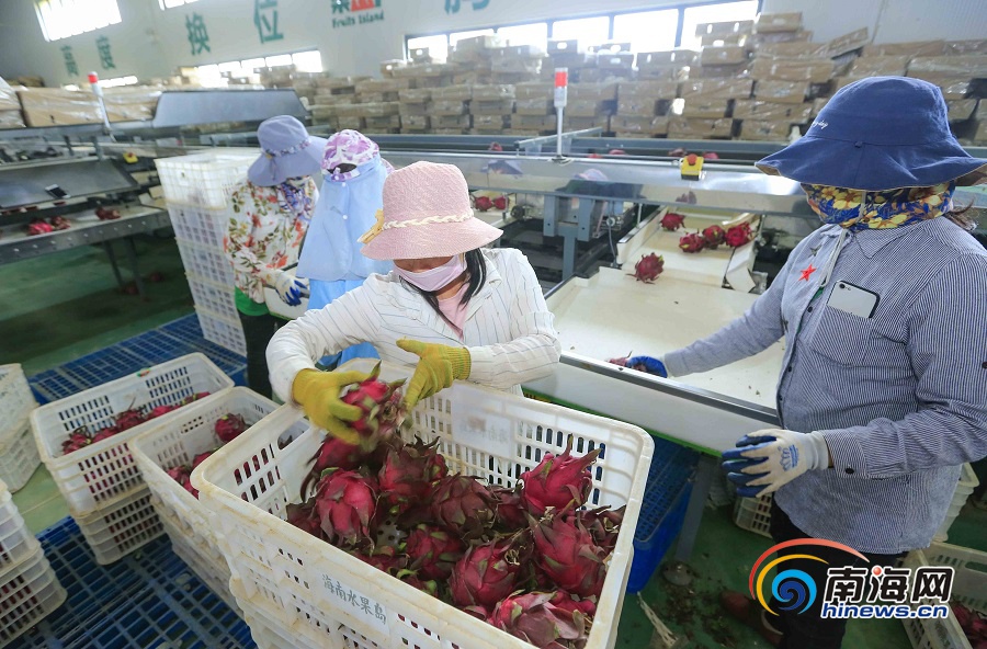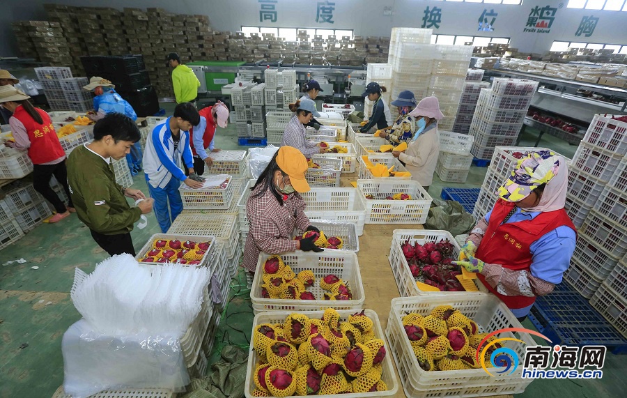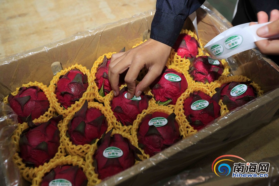 工作人員正在將火龍果打包。海報集團全媒體中心記者 陳元才 見習記者 李天平 攝