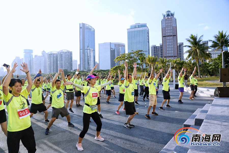 2019“海創客”馬拉松在海口舉行,參賽選手進行賽前熱身。南海網記者 劉洋 攝