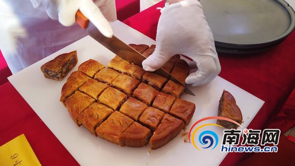 7月28日下午,2019年海南水晶宮廣式五仁金腿大月餅上市品鑒會(huì)開(kāi)幕。南海網(wǎng)見(jiàn)習(xí)記者韓星攝