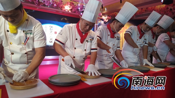 月餅品鑒環(huán)節(jié),水晶宮酒樓的師傅們來(lái)到舞臺(tái)前方,共同為賓客分切月餅。南海網(wǎng)見(jiàn)習(xí)記者韓星攝