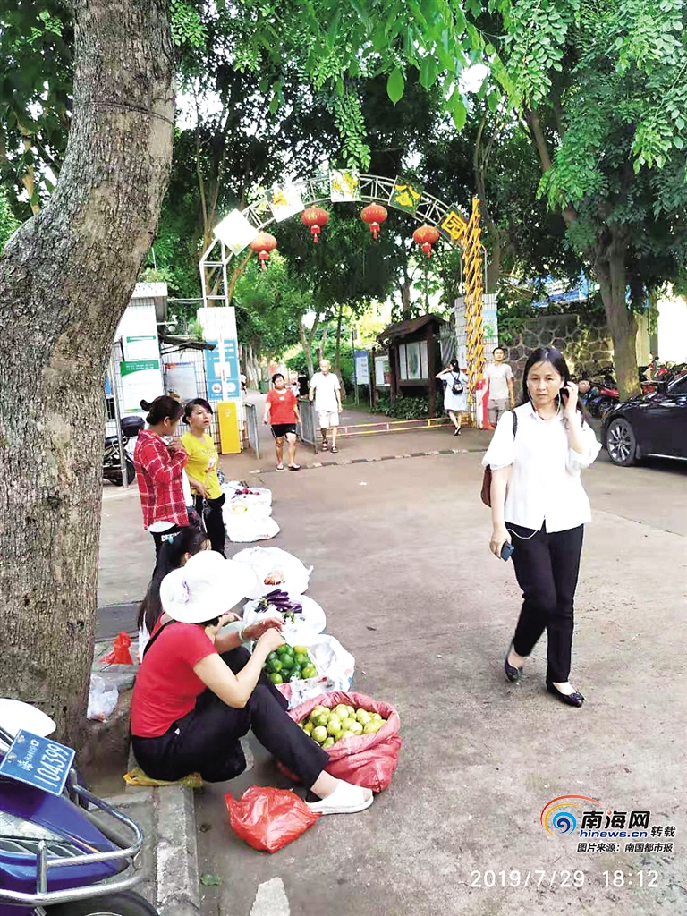 7月29日18時許及30日早上6時許,南國都市報記者從現場走訪發現,在海口金牛嶺公園西門門口路段,確實有不少流動的水果、蔬菜攤販在此處沿路擺攤經營,周圍居民反映,高峰期這里攤販扎堆,引起擁堵,散場過后,留下一地垃圾,有損環境。
