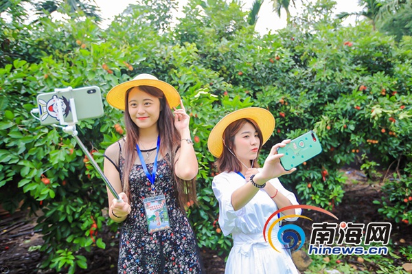 游客正在紅毛丹樹前拍攝留念。保亭旅文局供圖