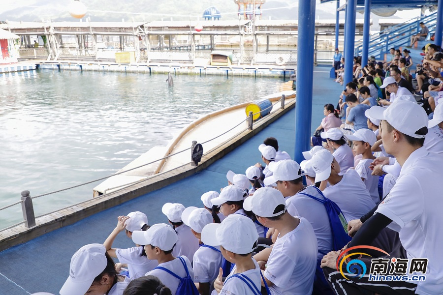 2019融創(chuàng)海南英苗夏令營的營員們在觀看海豚表演。南海網(wǎng)記者 李昊 攝