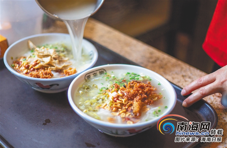 大多數(shù)三亞人的早餐是從一碗熱騰騰的港門(mén)粉開(kāi)始的。三亞那些充滿(mǎn)市井氣息的小巷里,港門(mén)粉店并不難尋。一碗港門(mén)粉從煮制到上桌,看似不到3分鐘時(shí)間,但背后是當(dāng)?shù)厝松朴帽就梁N妒巢呐腼兪澄锏捏w現(xiàn)。