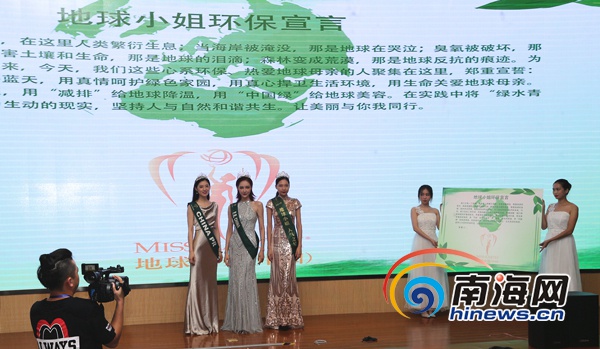 三名地球小姐進行環保宣言。南海網記者 陳望 攝